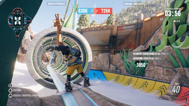 Командный соревновательный режим выглядит более любопытно, хотя и тут есть просчеты. Задумка следующая: две команды выполняют трюки на карте, поделенной на несколько секторов. «Захватив» один из них (выполняя трюки), можно временно активировать множитель x5. Если члены команды передвигаются вместе, это также дает дополнительные бонусы. Побеждает та группа игроков, которая заработает больше всего очков.
