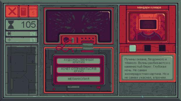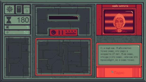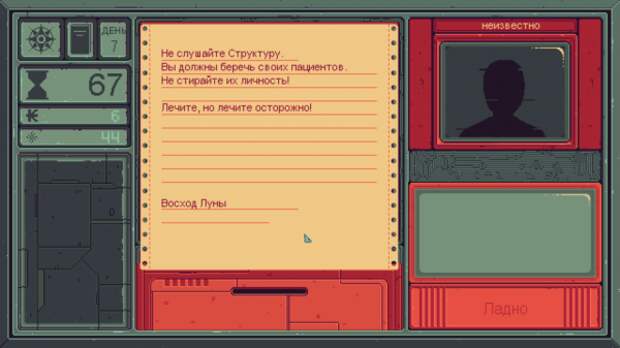 Если решаем, что психически «подозреваемый» здоров (ну, более-менее), то получим только три единицы «капок» (такая местная валюта). А вот если избавим его от «безумия», то в кошелёк упадёт сразу 15 капок. И это важно — в конце дня нужно заплатить в госказну семь капок. Если денег нет — всё, нас отправляют в зону отчуждения, что знаменует конец игры.