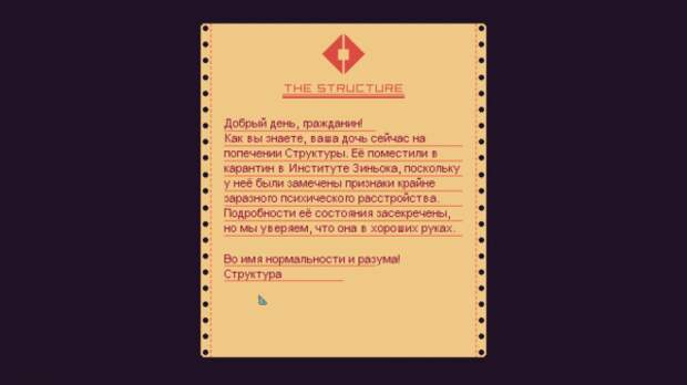 Вот мы и играем за одного из таких сканеров. Стал он таким не от хорошей жизни — это фактически единственный способ продвинуться по иерархической лестнице и получить доступ в закрытый Институт зиньока, где удерживают его дочку и, кажется, проводят над ней эксперименты. Через какое-то время с ним, естественно, связываются местные революционеры, призывающие бороться со Структурой. В свою очередь, наши работодатели настоятельно просят сообщать о таких контактах. Дальнейший расклад, думаю, очевиден…