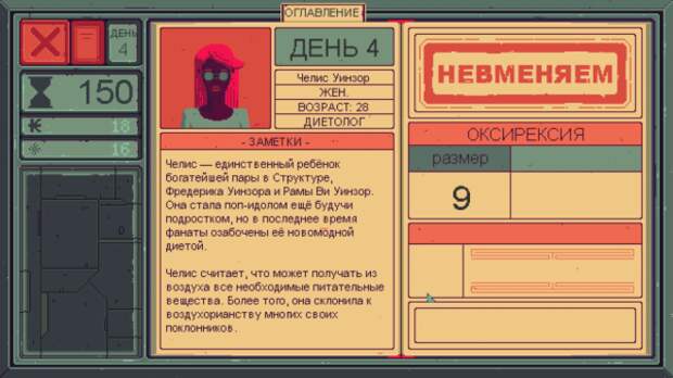 То есть ситуация классическая для таких игр: маленький человек ради спасения семьи вынужден работать на государственную машину, периодически вставая перед выбором — оставаться человеком и помогать людям или, стиснув зубы, делать всё, что от него хотят, лишь бы спасти дочку. Это не значит, что в этой истории не будет неожиданных поворотов, но в целом фабула максимально ожидаемая. В Papers, Please в этом смысле было больше глубины и деталей — хотя не исключено, что на тот момент такая история просто казалась свежей, а сейчас, после выхода и других игр в духе работы Лукаса Поупа, это уже кажется банальным.